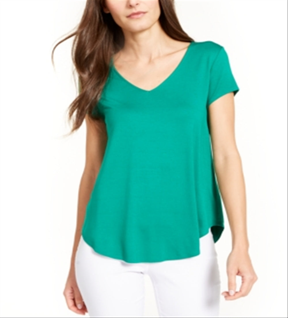 Bainha curvada. | Ajuste fácil; atinge o quadril | Decote em V |
