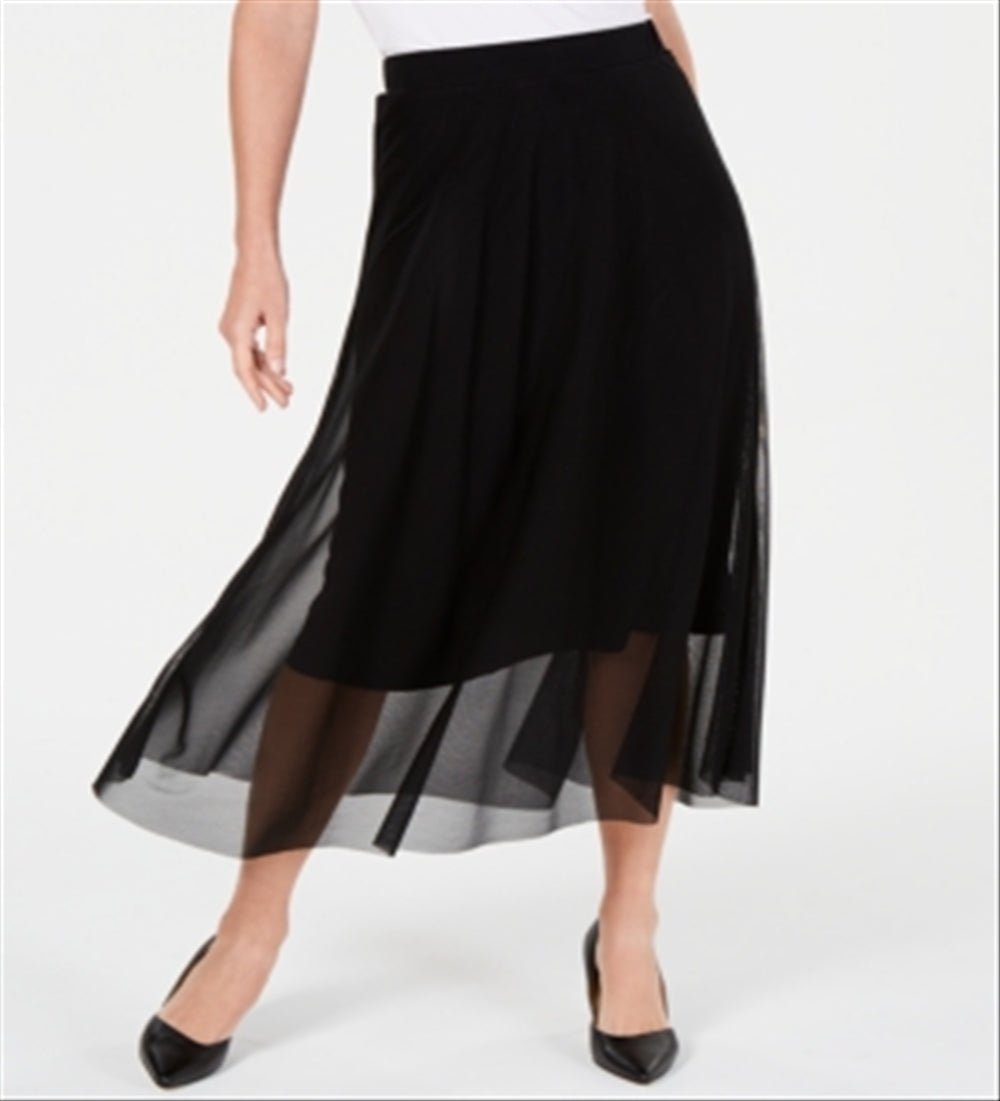 Saia feminina Alfani Mesh MIDI preta tamanho pequeno P