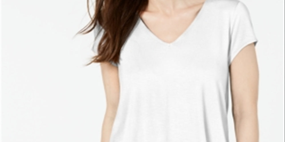 Camiseta feminina Alfani Petite com decote em V, branca, tamanho pequeno grande