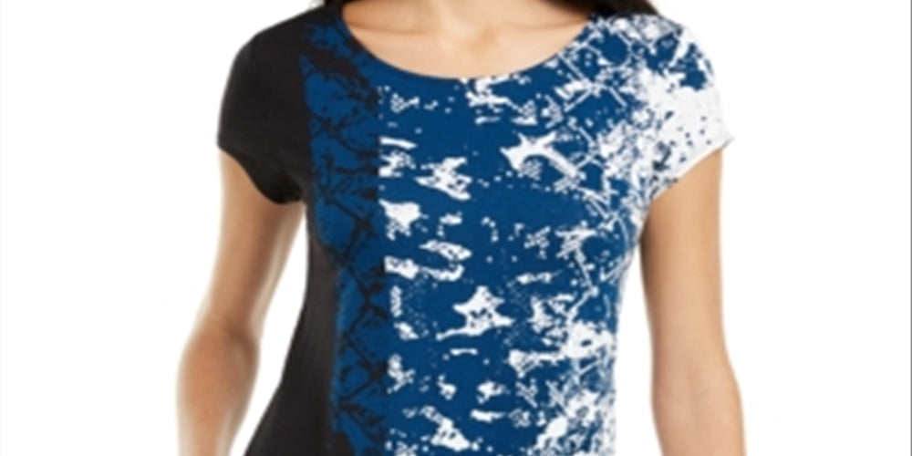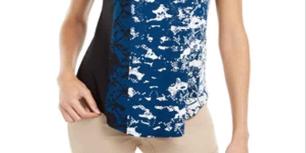 Camiseta feminina Alfani estampada com bainha redonda, azul, tamanho pequeno pequeno