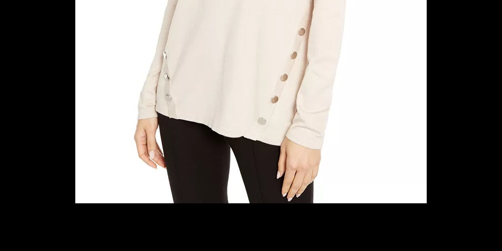 Suéter feminino Alfani canelado com detalhes bege tamanho pequeno