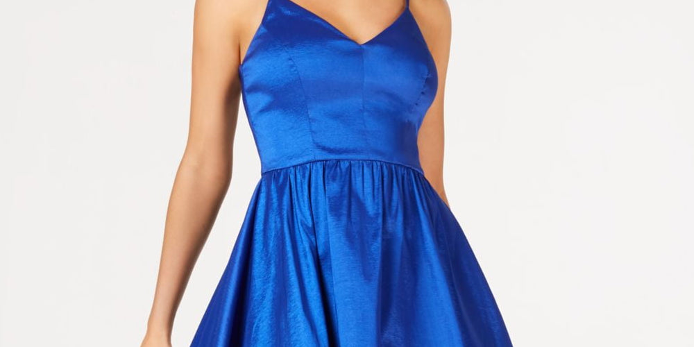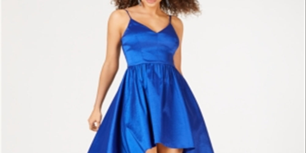 Vestido formal feminino B Darlin com alças finas e decote em V acima do joelho, azul, tamanho 9-10