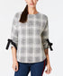 Charter Club Plaid Bow-Sleeve Top Preto Tamanho XX-G