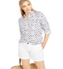Blusa feminina Charter Club estampada com mangas dobradas e mistura de linho, branca, tamanho grande