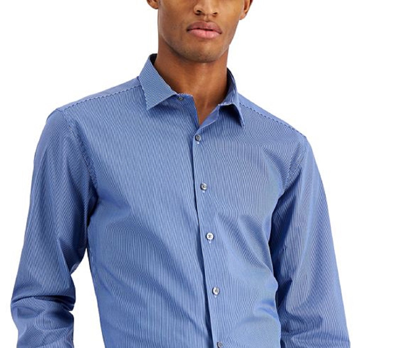 Atualize seus itens essenciais profissionais com o corte slim refinado e as listras elegantes desta camisa social impecável da Alfani. | O corte slim é mais justo no peito| mangas e cintura; apresenta cavas e mangas finas| Gola pontuda| Punhos com botões| Estampa listrada|