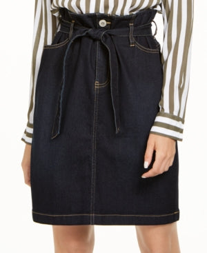 INC International Concepts Saia jeans feminina com cintura de saco de papel, azul, tamanho 2