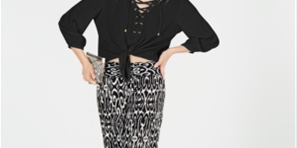 Blusa feminina com cadarço INC International Concepts, preta, tamanho pequeno