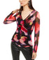 INC International Concepts Top feminino estampado com frente torcida, preto, tamanho pequeno e pequeno