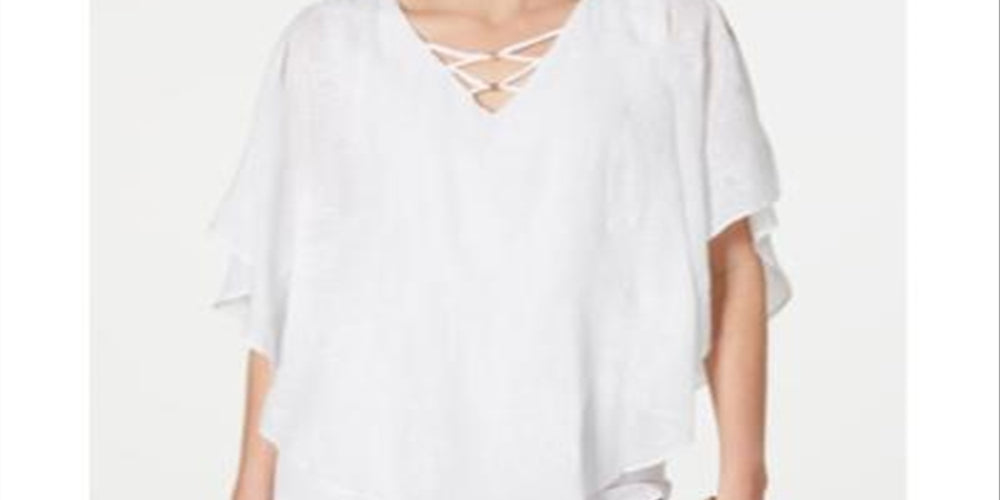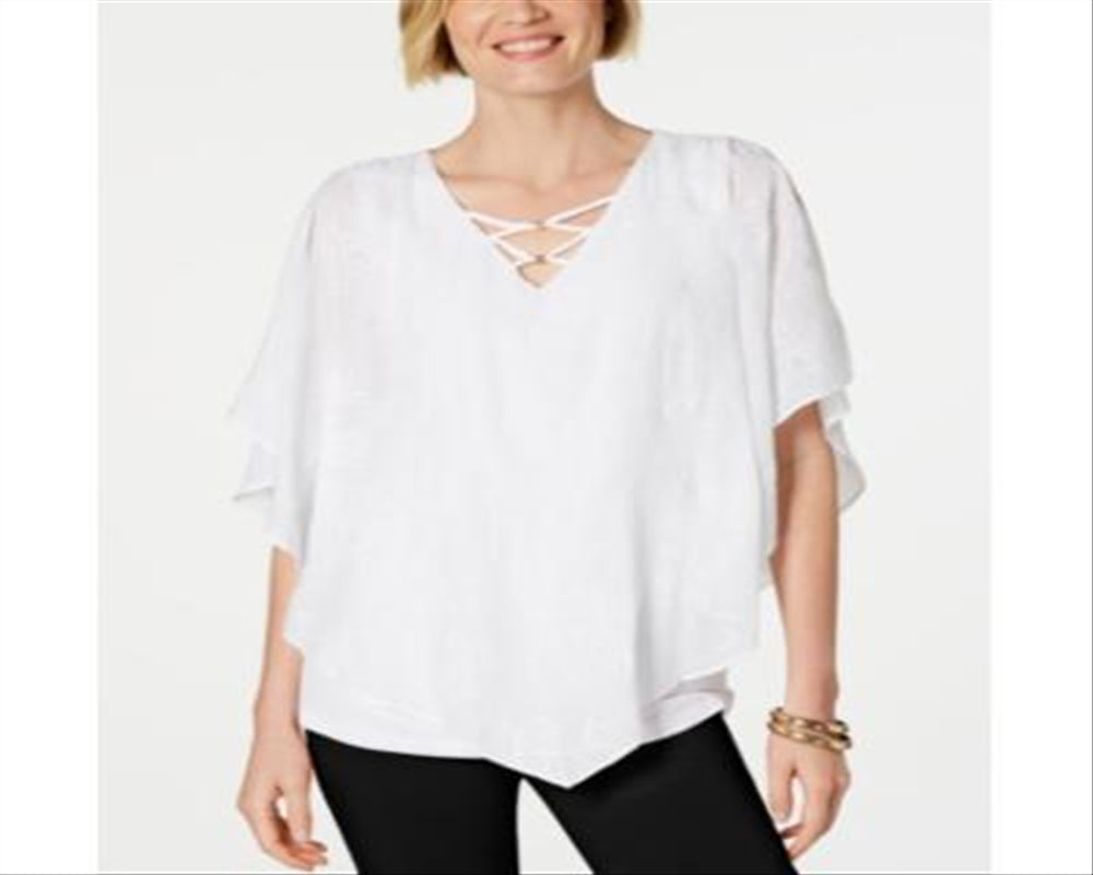 JM Collection Top Poncho Bordado Feminino Branco Tamanho Pequeno XL
