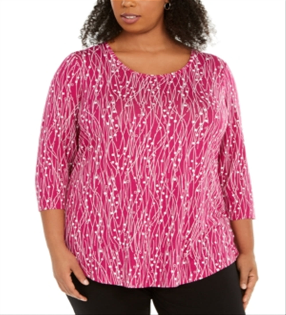 JM Collection Top feminino estampado com decote redondo plus size rosa 0X