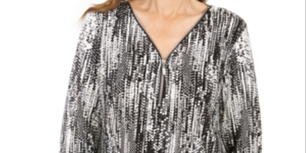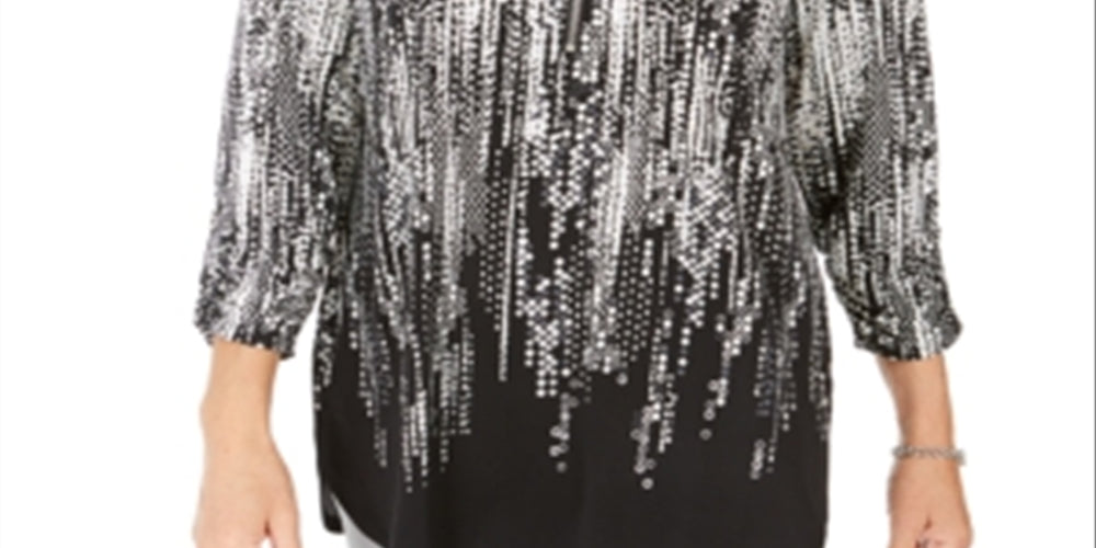 Túnica feminina estampada com zíper e gola alta, preta, tamanho pequeno, da coleção JM
