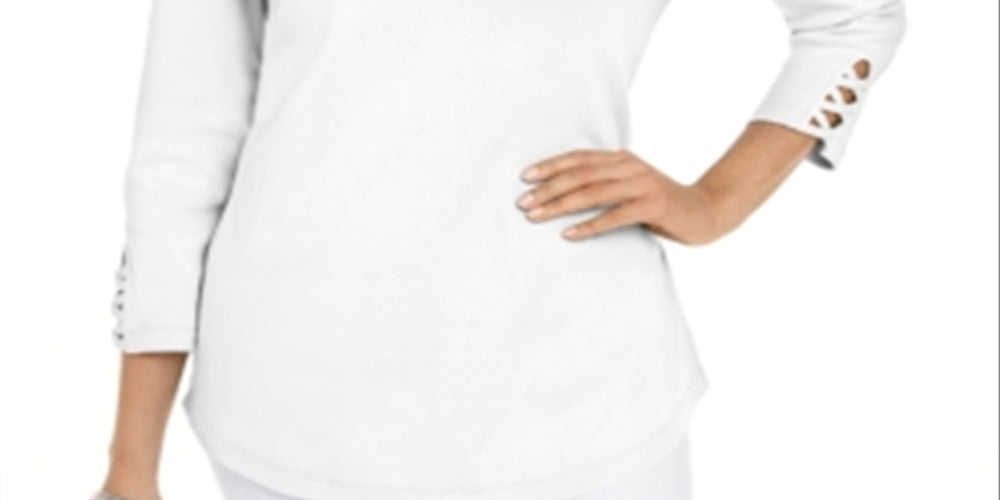 Camiseta feminina Karen Scott de algodão com cadarço, branca, tamanho XX-G