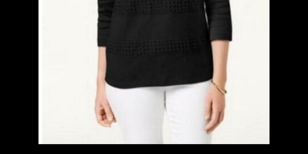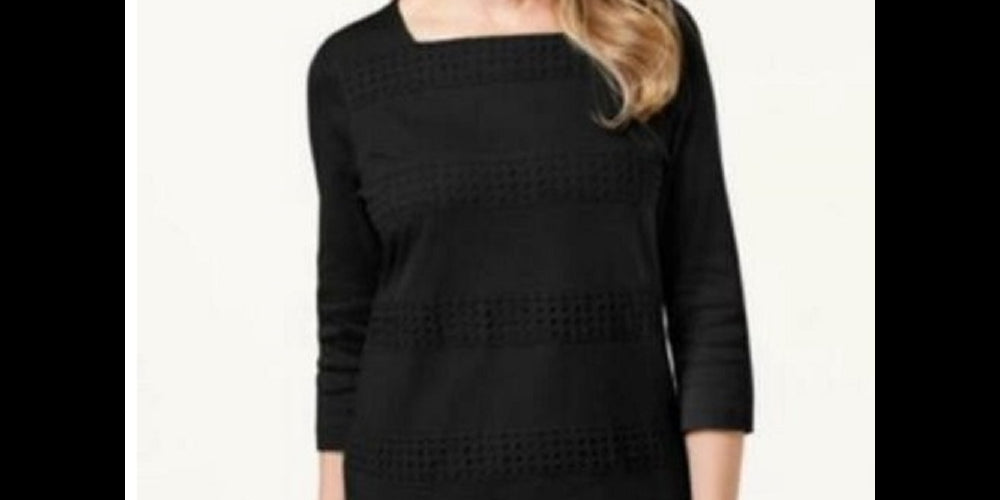 Karen Scott Blusa feminina listrada com decote quadrado e renda, preta, tamanho X-S