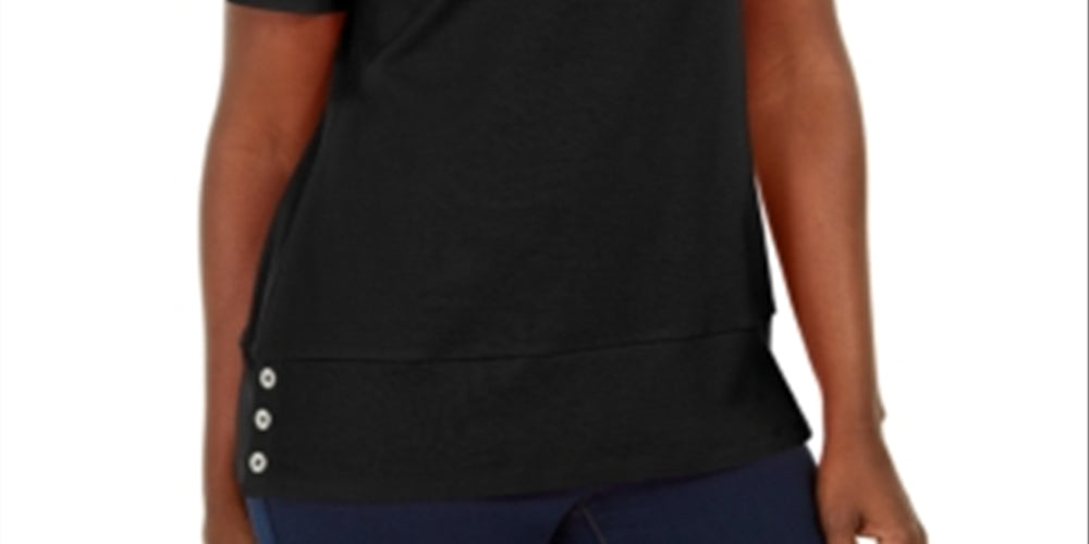 Blusa de algodão com decote redondo e bainha de botões Karen Scott | Mulheres | Roupas femininas - Blusas | ()