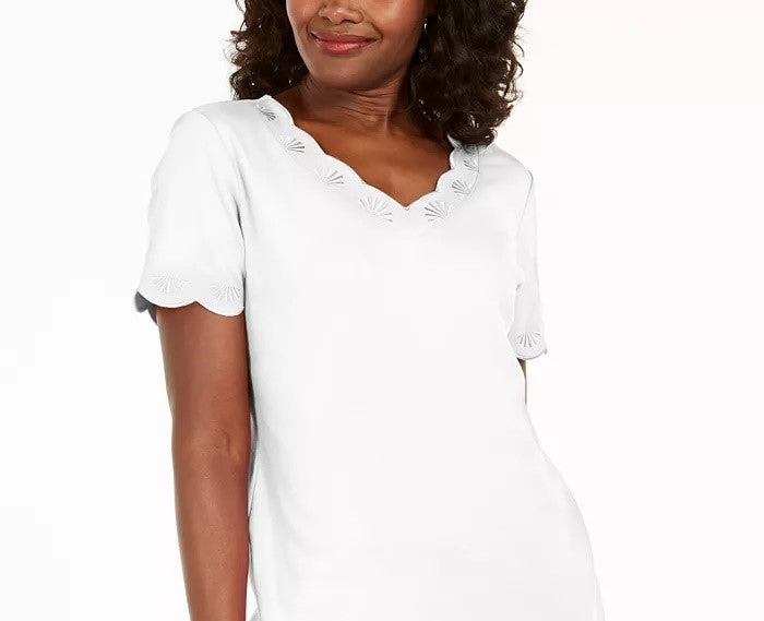 Camiseta feminina Karen Scott de algodão com decote em V e estampa recortada, branca, tamanho XXG