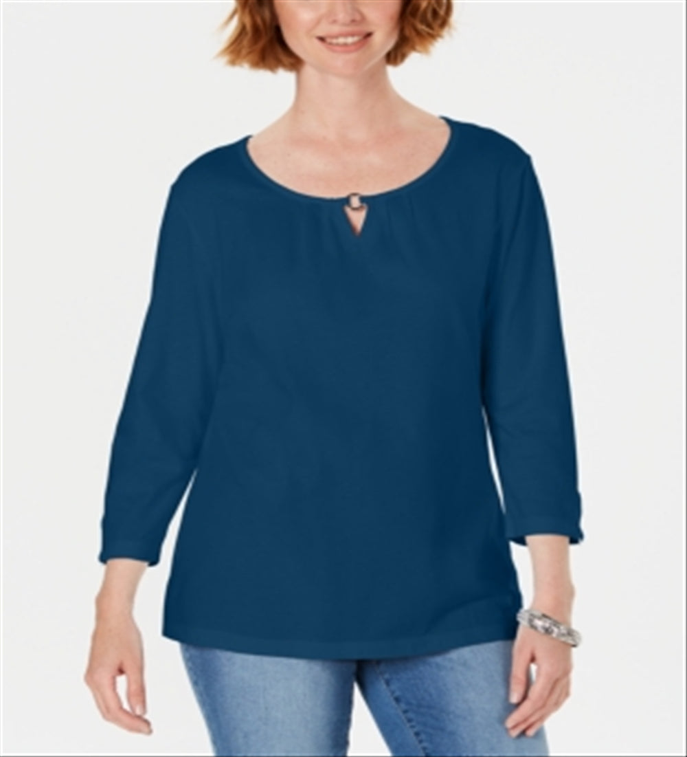 Blusa feminina Karen Scott manga três quartos azul tamanho grande
