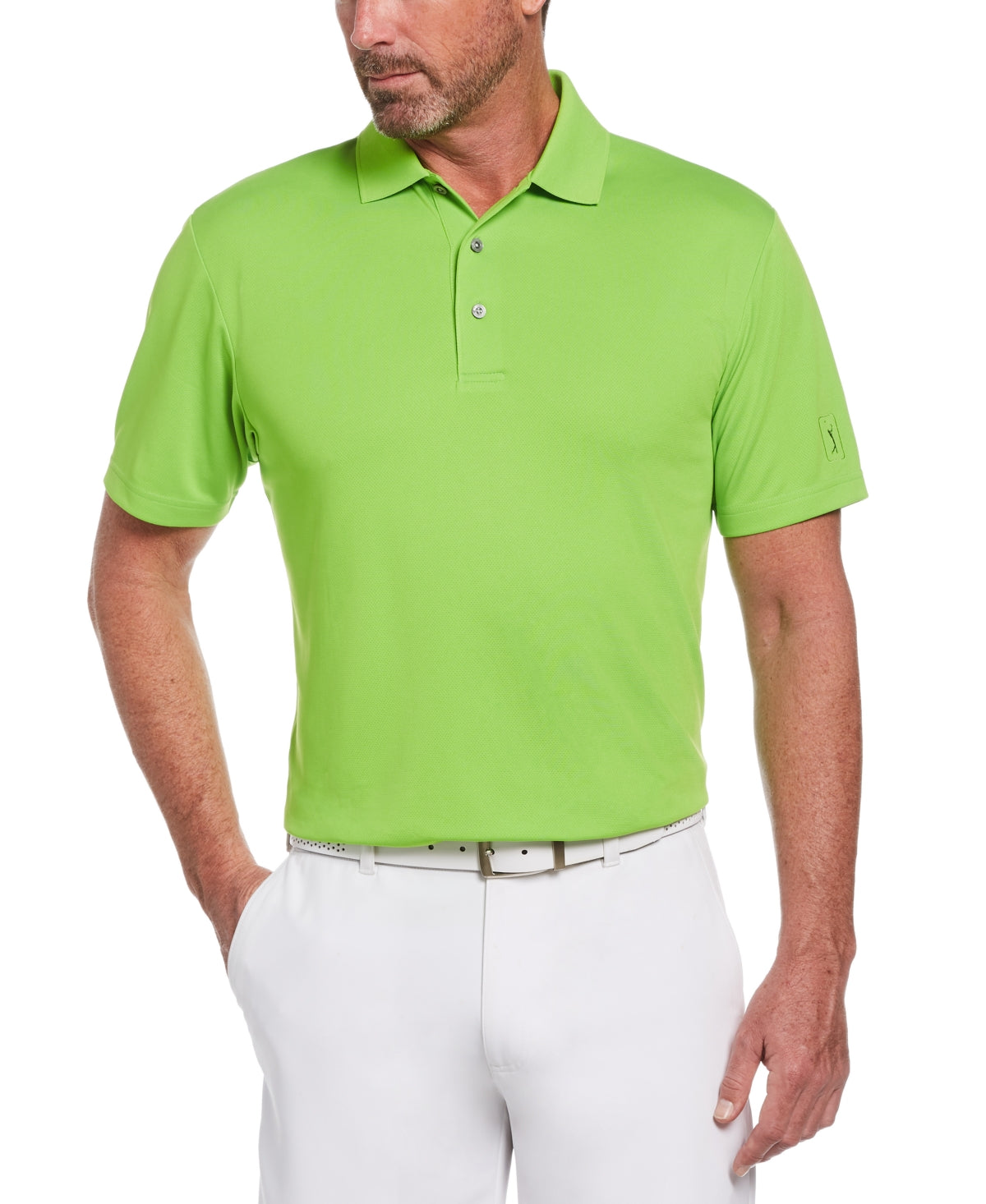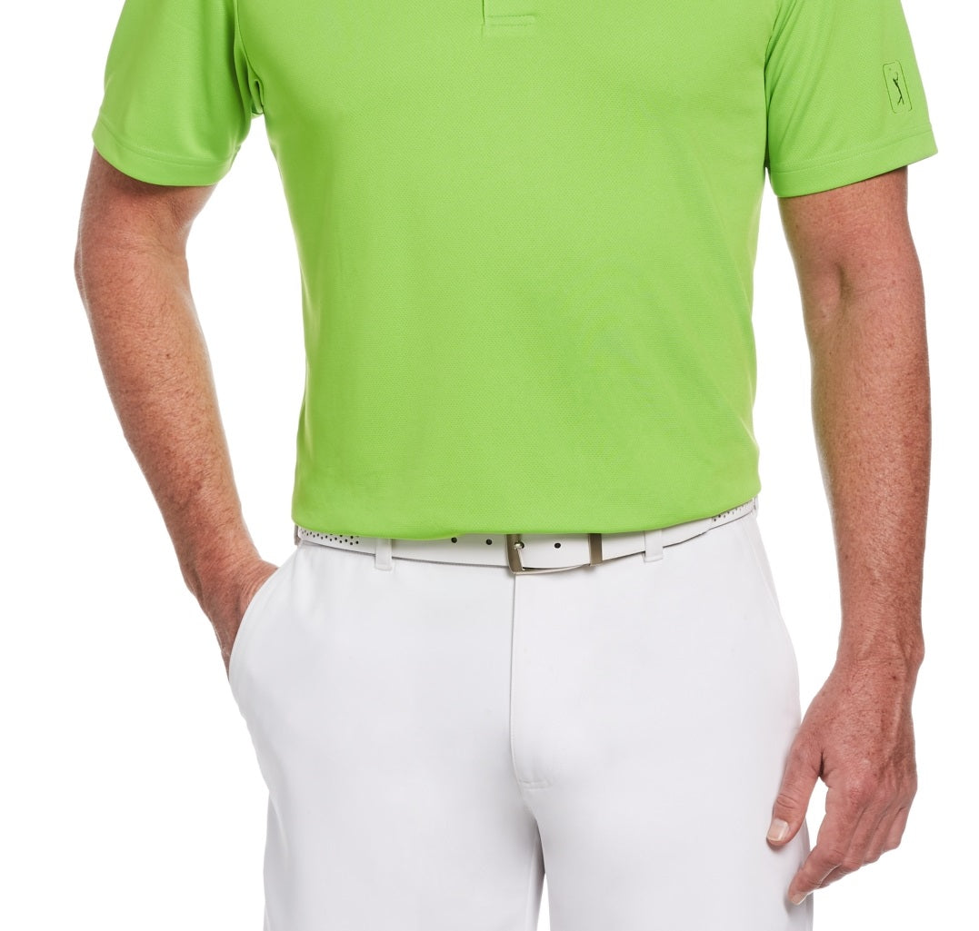 Mantenha-se confortável no campo com esta polo do PGA Tour. O tecido respirável Airflux ajuda você a manter a frescura mesmo durante uma tacada de pressão. | Gola polo; carcela com três botões na frente | Malha Airflux respirável | Poliéster | Lavável à máquina | Importado