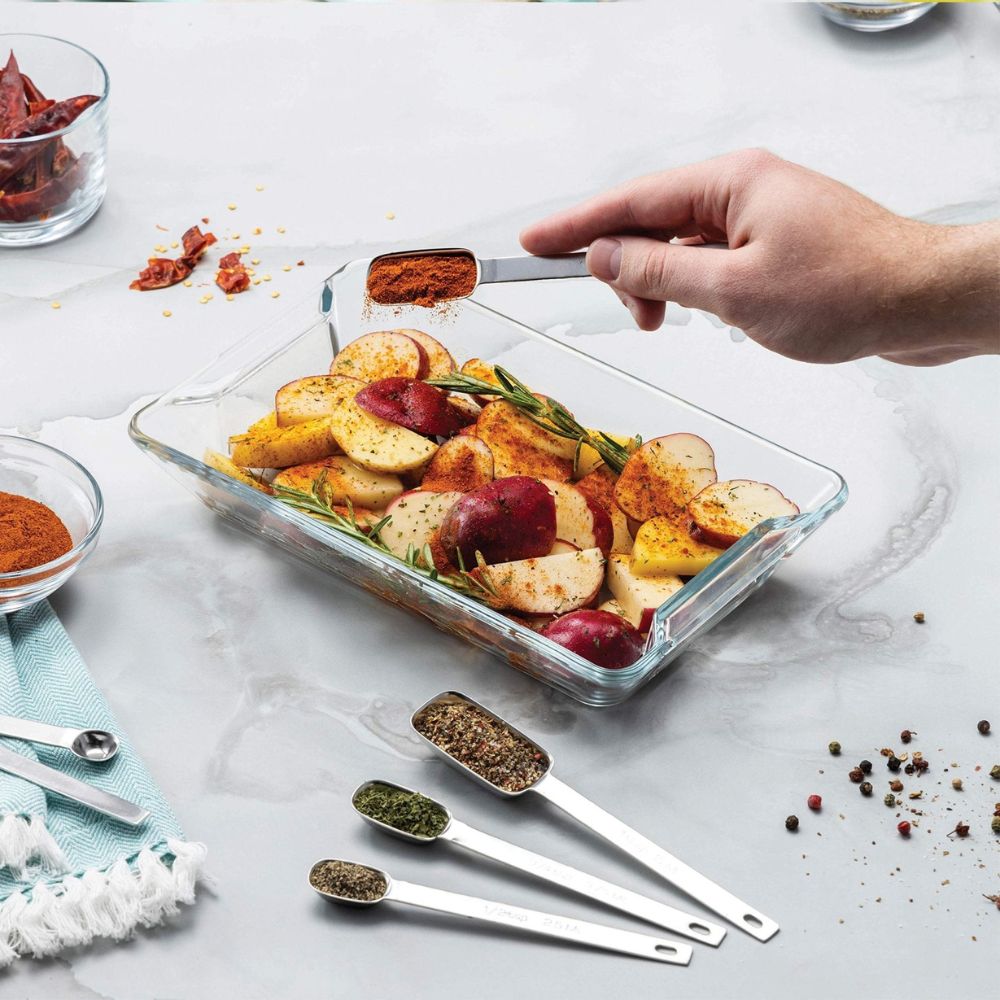 • DESIGN RETANGULAR - As cabeças das colheres são estreitas o suficiente para caber na maioria dos potes de temperos, evitando que você tenha que despejar o conteúdo da garrafa de forma desorganizada. O cabo longo e confortável garante uma pegada firme.