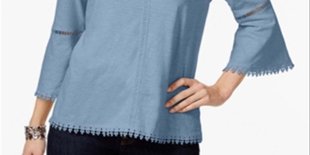 Estilo & Co|estilo; top|ocasião; casual|tamanho; pm|material; 100% algodão|cor; azul|pescoço de joia