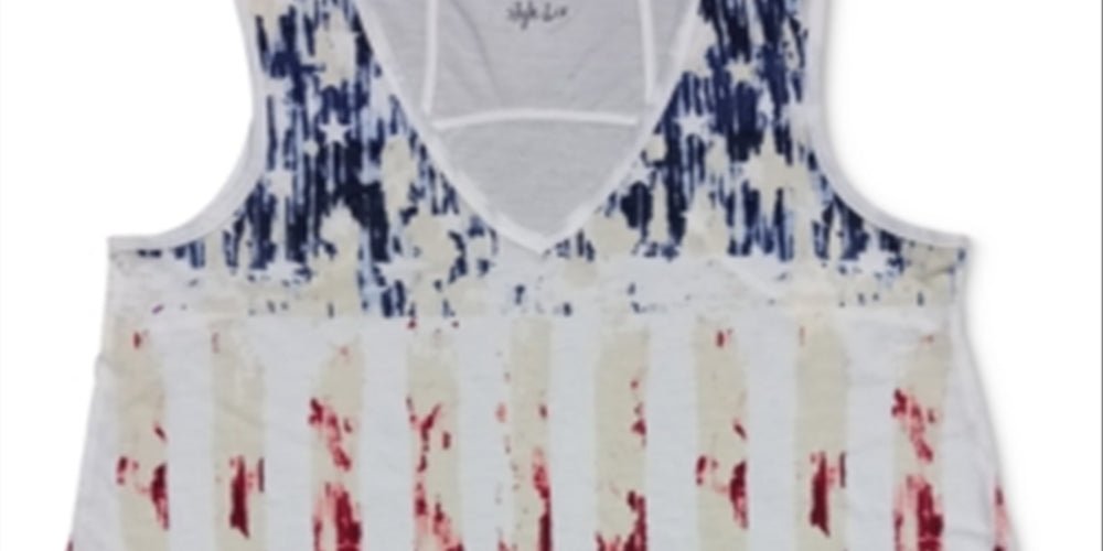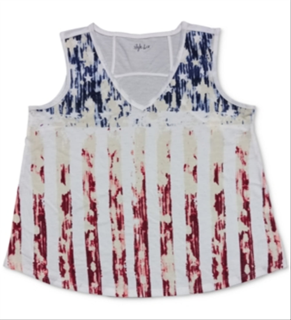 Regata feminina com estampa de bandeira Style & Co, branca, tamanho pequeno