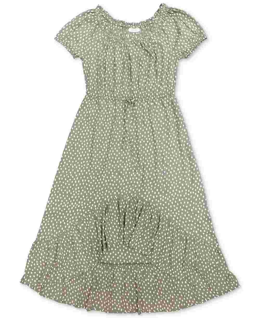 Vestido feminino estilo camponês alto e baixo, verde, tamanho médio