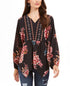 Top feminino estilo camponês com bainha de lenço estampado preto tamanho extragrande