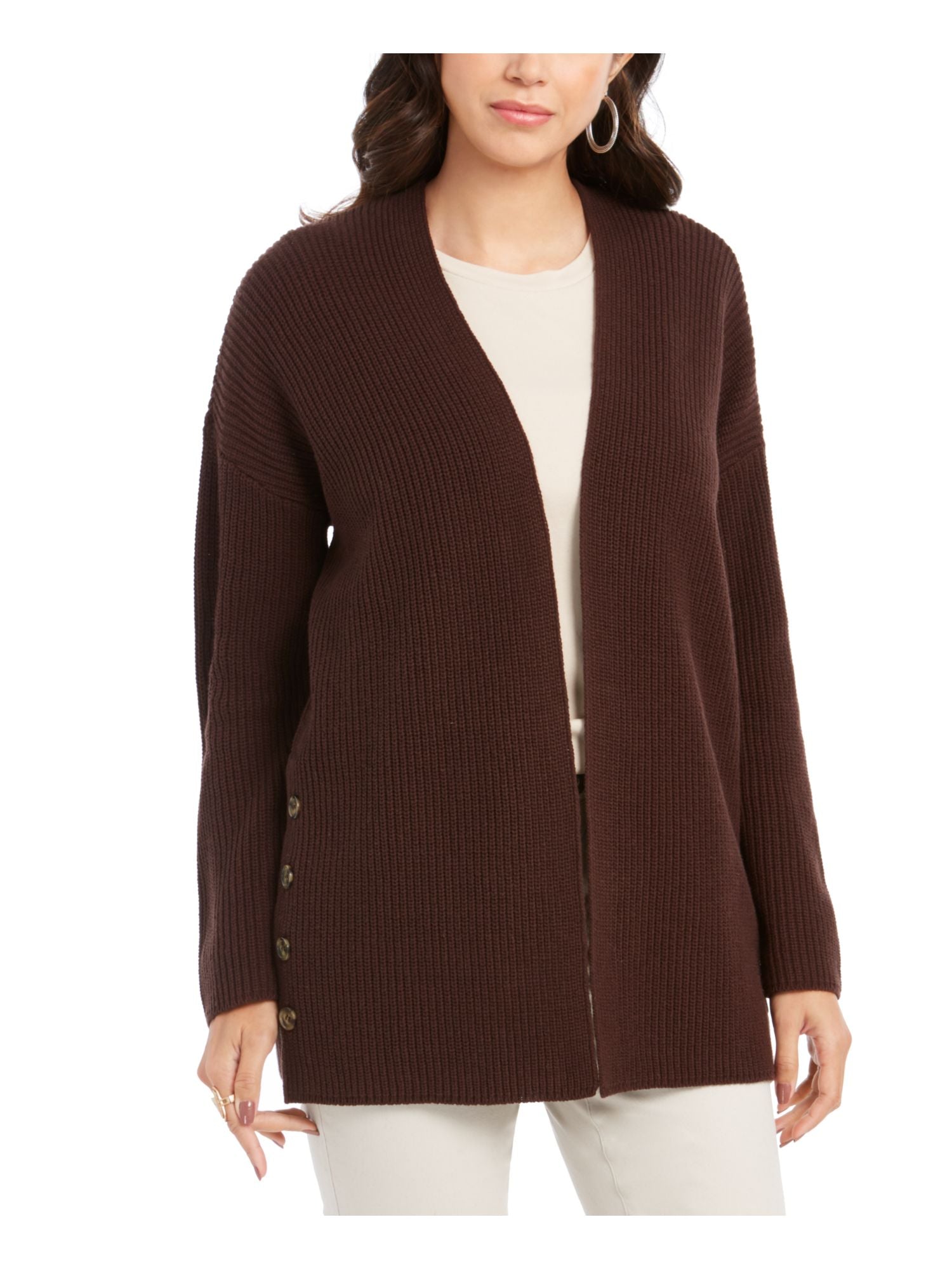 Cardigan feminino aberto de manga comprida estilo & co, marrom, tamanho PS