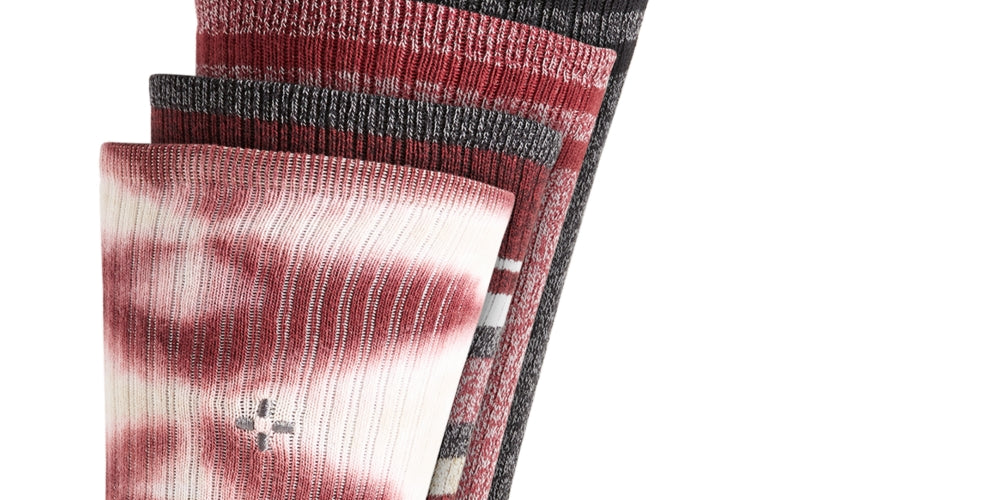 Misture seus fundamentos com a mistura divertida de tie-dye e listras casuais neste pacote de quatro pares de meias da Sun + Stone. | Quatro pares de meias (um tie-dye | três listradas) | Comprimento médio | Logotipo bordado | Algodão/poliéster/borracha/elastano | Lavável à máquina