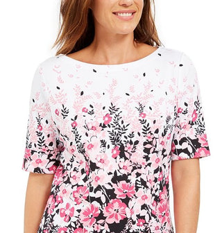 Karen Scott Blusa feminina com estampa floral e decote canoa, preta, tamanho pequeno
