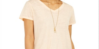 Blusa de noite feminina Alfani, lisa, manga curta, marrom, pequena, pequena