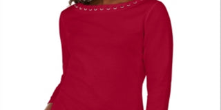 Karen Scott Top de algodão com acabamento em ilhós feminino, vermelho, tamanho pequeno