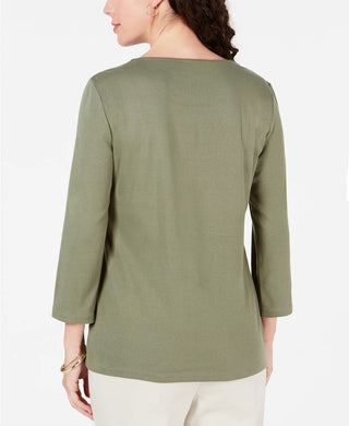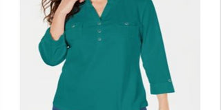 Camisa utilitária feminina Karen Scott de algodão Johnny-Collar, verde, tamanho grande