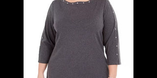 Karen Scott Top Feminino Plus com Tachas e Gola Canoa Preto Tamanho 0X