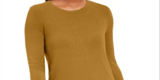 JM Collection Blusa feminina lisa de manga comprida com decote em joia, amarela, tamanho pequeno e pequeno