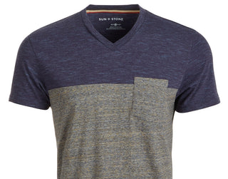 Camiseta masculina Sun + Stone Aiden Pieced Patch Pocket, azul marinho, tamanho pequeno