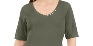 Blusa feminina Karen Scott com decote em V e detalhes em botões, verde, tamanho grande