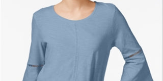 Blusa feminina estilo & co com manga sino e decote em joia, azul, tamanho pequeno médio