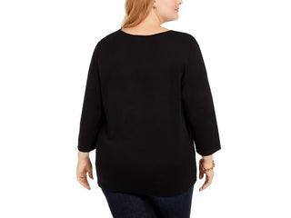 INC International Concepts Top feminino com decote em V e ferragens, preto, tamanho médio