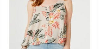 Blusa feminina estilo & co, estampada, sem mangas, com decote alto e decote profundo, com flores blush, tamanho pequeno P