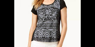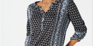 Blusa feminina com estampa gráfica e glitter, tamanho pequeno e médio, da Style & Co