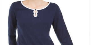 Blusa de algodão com acabamento contrastante Karen Scott feminina, azul, tamanho médio