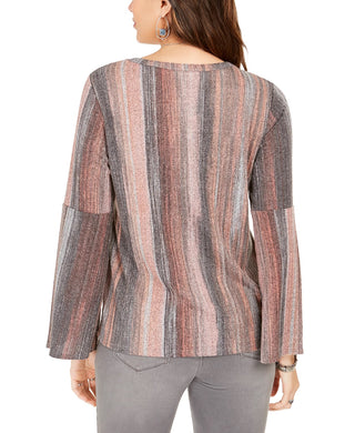 Blusa listrada feminina estilo & co, manga sino, roxa, tamanho extrapequeno