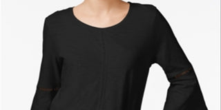 Blusa feminina estilo & co com manga sino e acabamento em crochê, preta, tamanho pequeno P