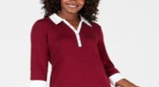 Vestido-camisa de algodão com acabamento contrastante Karen Scott feminino, vermelho, tamanho pequeno G