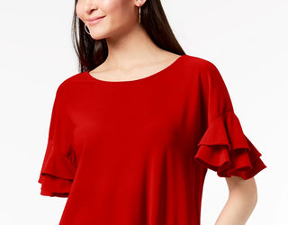 Blusa feminina pequena com mangas franzidas INC International Concepts, vermelha escura, tamanho médio
