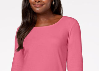 Karen Scott Blusa de algodão com decote redondo feminina, rosa escuro, tamanho pequeno
