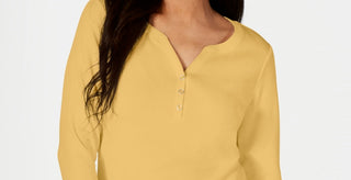 Karen Scott Top Henley de Algodão Feminino Amarelo Tamanho Médio