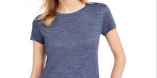 Camiseta feminina lisa com amarração nas costas Maison Jules, azul escuro, tamanho extragrande