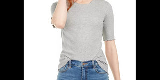 Blusa feminina Maison Jules com decote redondo e manga cotovelo, cinza, tamanho extragrande