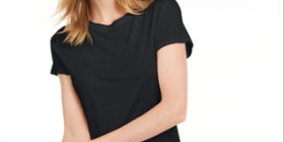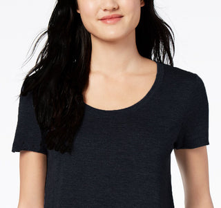 Camiseta feminina com decote redondo Maison Jules, preta, tamanho XX-G